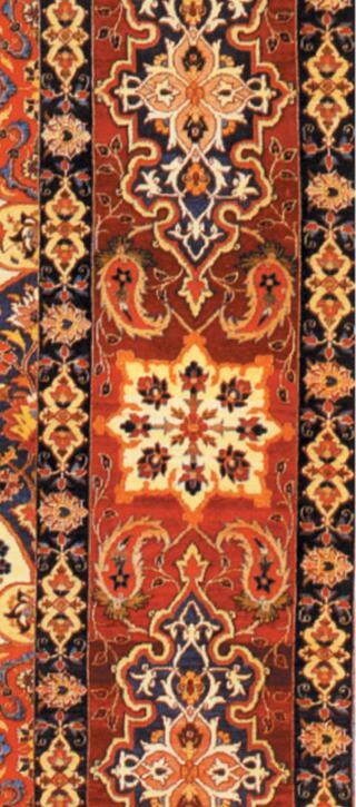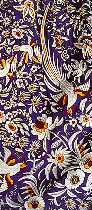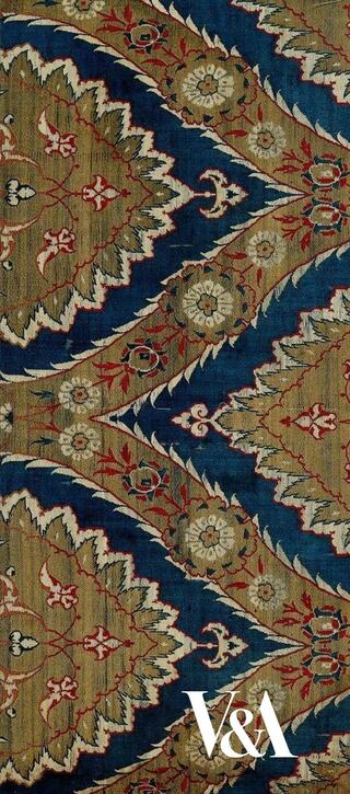 Fact Sheet (Link opens in new window)In a culture-bridging gesture intended to build recognition for Persian Arts in the West, a gift of 74 exemplary textile works was delivered to the South Kensington Museum, now the Victoria and Albert Museum, from the Shah of Iran in 1877. The gift which now adorns 2013 Darius II, is a masterwork of silk tapestry dyeing, weaving and needlework technique that has evolved over centuries. Brought to Ancient Persia via the Silk Road from Central Asia, use of metal threads and brilliantly dyed silk thrived since the Sassanian Empire of the 1st C. AD when silk worms were introduced to the region. Color was as meaningful as technique – here, rich indigo symbolizes the sky and eternity, while yellow dyes produced by saffron, turmeric, sumac and pomegranate skins signify piety.