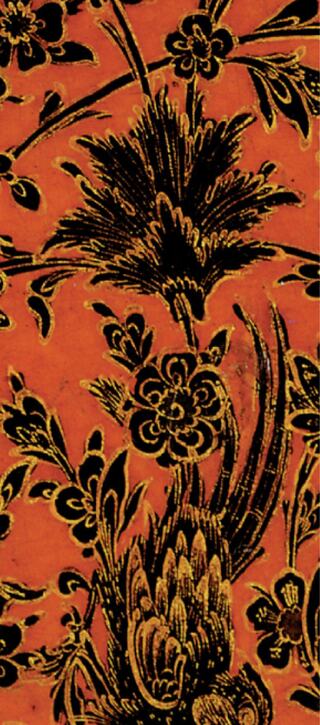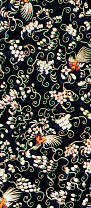 Fact Sheet (Link opens in new window)The brocade scarf shown on the 2002 Darius II label was woven in deep red and black silks. Parsi textiles from the 19th century often used motifs of birds, vines and flowers to symbolize a specific season.