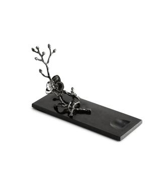 Striking black details add a dramatic touch to Michael Aram's sculptural botanical collection. This Wine Rest features exquisitely crafted orchid blossoms that cradle the neck of a wine bottle, showcasing the flower's elegance and grace through intricate, delicate artistry.