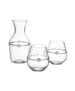 Crafted to elevate everyday moments into extraordinary experiences, this set of two stemless red wine glasses and matching carafe gleams with the radiant beauty of shimmering optic glass. As each piece is handmade, no two are alike, making them uniquely individual with charming variations and subtle differences. Each piece of Juliska Bohemian glass is individually signed