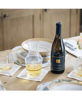 Refined and stylish, this hosting gift boasts a bottle of 2023 Signature Pinot Noir combined with a beautiful small stainless-steel pitcher by Georg Jensen and dinner napkins by Kim Seybert.